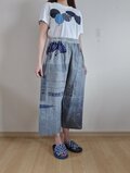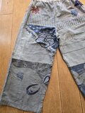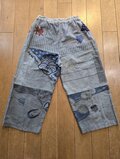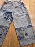かすりのパッチワークが とっても丁寧で 美しく 色とりどりの生地も素敵にコラボ! 刺し子も 綺麗なラインで 美しい。 生地を 惜しげなく贅沢に使って 普通のパンツだと 2枚は 十分取れそう。 ワンピースにすれば とっても素敵になりそう。 プチプレゼントも 可愛い。