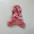 ☆犬服 接触冷感 ロンパース ツートンタイプ ハワイアン柄ハイビスカス赤&チェック赤 (オレンジリプ)XXSサイズ になります。