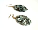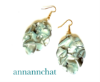 フランスから取り寄せた シェル風カラー 水色とブラウンの葉のモチーフで ピアスを作りました。