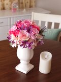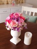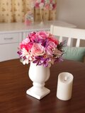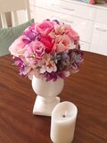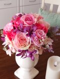 大きなローズを使用しエレガントなイメージに仕上げました。花器も高級感があり、全体的に華やかでエレガントそして高級感のある雰囲気です。