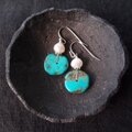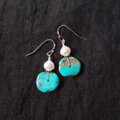 ナチュラルな質感のターコイズに、ころんと可愛らしいポテトパールを添えたミニピアス。