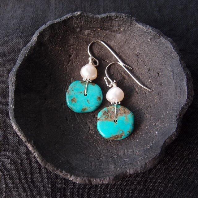 Turquoise × Pearl Earrings/ターコイズ×パール フックピアス(S)