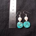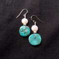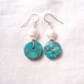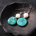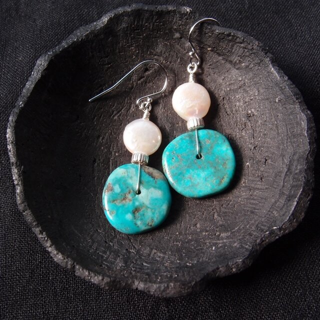 【SV】Turquoise × Coin Pearl Earrings/ターコイズ×コインパール フックピアス(L)