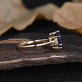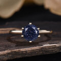 ソリッドイエローゴールドリング 7mm ラウンドカット ブルーサンドストーンリング ソリティアリング