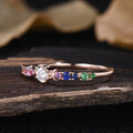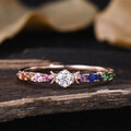 宝石: 1.5mm 天然イエロー サファイア、2mm 天然オレンジ サファイア、1.5mm 天然イエロー サファイア、2mm 天然ピンク サファイア、1.5mm 天然ピンク サファイア、3.5mm モアッサナイト、1.5mm 天然アメジスト、2mm 天然ブルー サファイア、1.5mm 天然ブルー サファイア、 2mm 天然ツァボライト、1.5mm 天然ツァボライト (左から右へ)