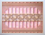 障子の白と木材のベージュのみだった組子の世界に色彩を添えてお届けします。