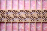 組子アートパネル 【書院障子風 八角面角麻帯 友禅紙<桜>】 和風インテリアパネル