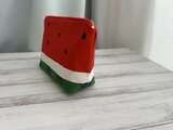 美味しそうな真っ赤なスイカの生地でポーチを作りました。