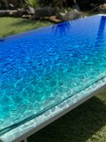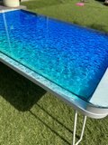 オーシャンアート ブルーウォーター 折りたたみガラステーブル レジンアート エポキシテーブル