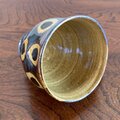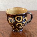 明るめの飴釉の下に丸い文様が浮かび上がり、琥珀色の艶を帯びています。