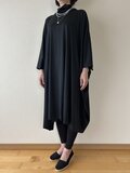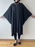 ゆったりとしたシルエットが魅力のブラックワンピース。