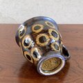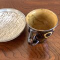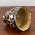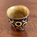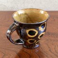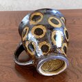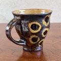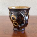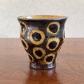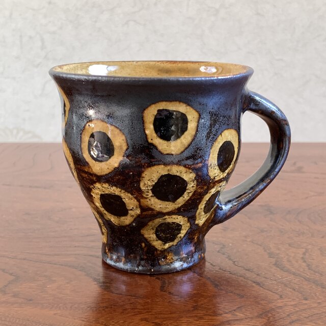 明るめの飴釉の下に丸い文様が浮かび上がり、琥珀色の艶を帯びています。