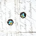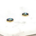 黒漆と青螺鈿の花の六角ピアスイヤリング
