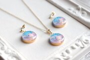 レジンアート ラウンドピアス〈夕と夜のあわい①〉