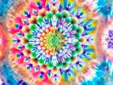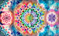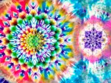 全て染色されるタイダイ染め、絞り染めの作品群。