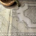 長い月日を経て、時間が作り上げた味わい深い一枚。ナチャラルカラーにクラシカルなメダリオンがとても落ち着いた印象です。