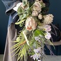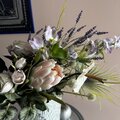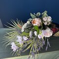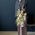 色鮮やかなブルー系の紫陽花が一足早く部屋の中で咲いたようで、部屋が一段明るく華やぎました。 とても素敵なブーケを作って頂き、どうもありがとうございました!