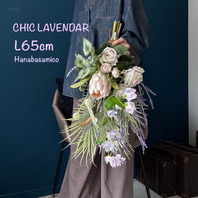 65cm CHIC LAVENDER《母の日にも》パープルテイストのブーケスワッグ エレガントなインテリアをお探しの方