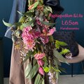 《母の日にも》L65cm!パフィオ&パチュリ。ソフトパープル、ディープピンク。リッチフラワーを貴重にしたスワッグブーケ
