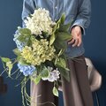 《母の日にも》丁度いい40~60cm!旬のアジサイ!花は、青+緑+白あじさいのみで束ねた,モコモコスワッグブーケ