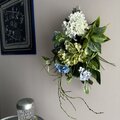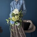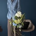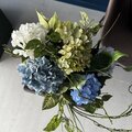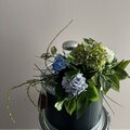 色鮮やかなブルー系の紫陽花が一足早く部屋の中で咲いたようで、部屋が一段明るく華やぎました。 とても素敵なブーケを作って頂き、どうもありがとうございました!