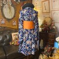 【着物 リメイク ミニミディ ワンピース ドレス 洗える 化繊 帯サッシュベルト 和洋折衷 レトロ 古着 ハンドメイド 花咲く詩を語る。 KW-941】