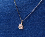 18金製ピンクゴールド:{バラ}のペンダントは主張しすぎない程よいサイズ。