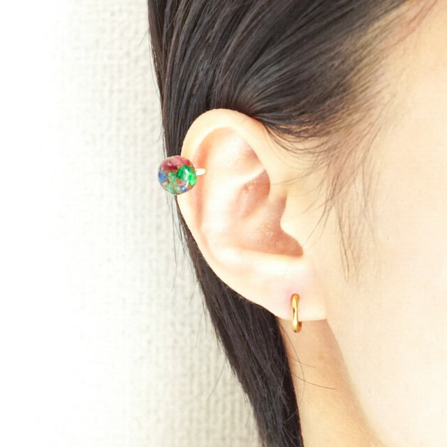 イヤーカフ イヤーアクセサリー 赤 ブルー 青 緑 グリーン マルチカラー マーブル シルバー 大ぶり 大粒 重ね付け 金 カラーストーン 色石 カボション 選べる 10月誕生石 差し色 カラフル 一点もの 一点物
