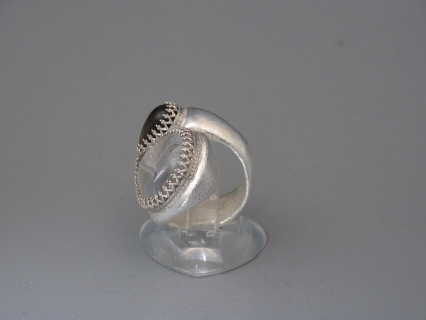 リングのサイズは12号、重さは25g、最大幅は34mm、金属部分は純銀です。