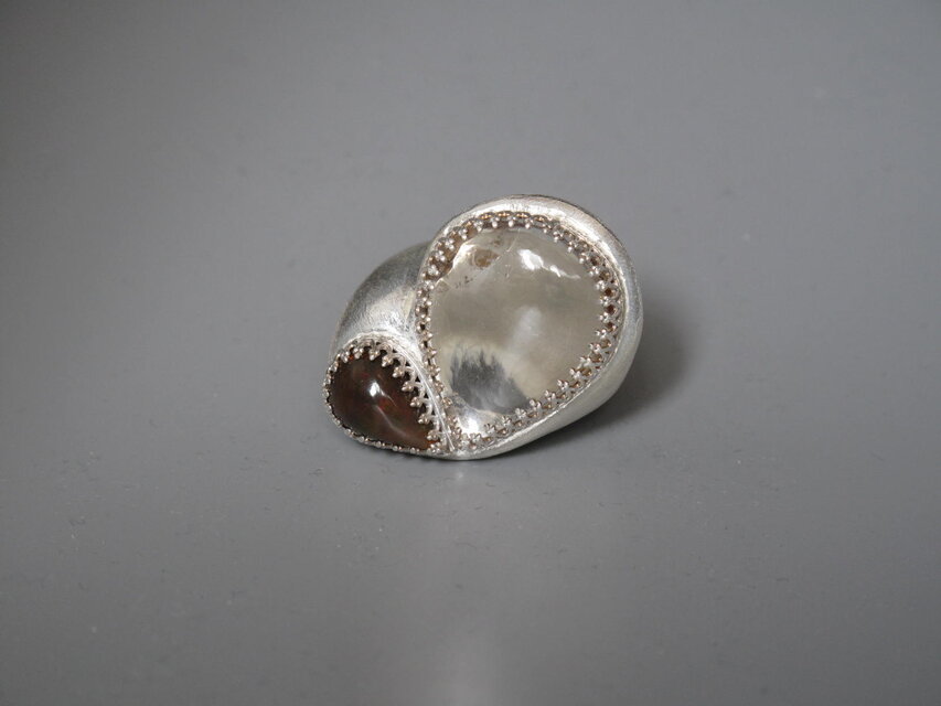 無事に届きました! 予想通り可愛い石です! 予想外だったのはシルバーの腕が太いことで、前回購入したフローライトと同じように中指に嵌められるかなと思っていましたがキツキツでした。 少し大きいですが薬指に嵌めて楽しむことにしました♪ いつも素敵な作品をありがとうございます。 気分によって過去に購入した作品に付け替えて楽しみます。 また新しい作品を欲しくなるかもしれませんがその時はよろしくお願いします。