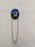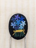 夜空に溶け込むような黒地に、青系の糸で沢山の花を刺しています。