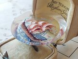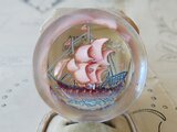 桜色の帆がやさしく眩しい、そして何とも言えなくあたたかな雰囲気あるガレオン船のブローチです。