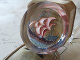 1930年代 さくら色のガレオン船/カモメ/波 Lucite製ブローチ(約44㎜)