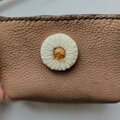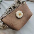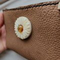 開閉のファスナーには裏面に角模様を残して花びらを彫り、チャームとして付けました。