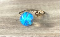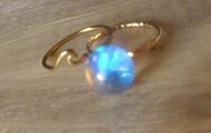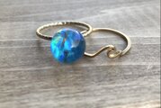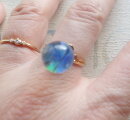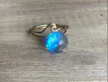 つやつやのマンマルにオーストラリアの海を思わせるブルーグリーンの人工オパールの欠片を閉じ込めリング台にオンしました