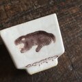 、手描きならではのペイントの移り、窯傷や経年の擦れ、器の形の歪み、黒点、凹凸、ピンホール、フリモノ、釉抜け等があります。