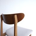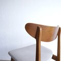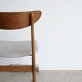 デンマークビンテージチェアの中でスタンダードなデザインとも言えるこちらのダイニングチェア。国内外でリ・デザインされることの多いモデルの一つですが、やはりオリジナルの洗練されたデティールやバランスは目を見張るものがあり、こちらの単体に関しては背もたれの美しい形状が静かに主張している印象を受けます。