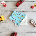 コンパクトなハーフハンカチは、ダブルガーゼ素材でかさばらず、サッと取り出しやすいのが特徴。肌触りが柔らかく、吸水性にも優れているため、お子様の日常に安心してお使いいただけます。また、軽トラのデザインもとても可愛らしいです。