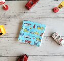 小さなお子様のポケットにぴったりな、働く車デザインのハーフハンカチです。かわいらしい救急車、ミキサー車、パトカー、消防車、トラック、ショベルカーなど、様々な車が描かれていて、持っているだけで心が弾むアイテムです。