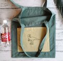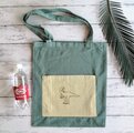 ティラノサウルスの刺繍 トートバッグ 肩掛け A4サイズ収納可能 緑 マチなし 大きいポケット オーダーメイド