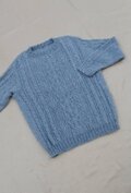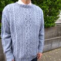 ネップの入った水色の糸で編んだメンズアランセーターです。