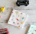 小さなお子様のポケットにぴったりな車デザインのハーフハンカチです。かわいい車たち。持っているだけで心が弾むアイテムです。