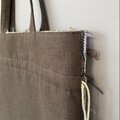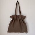 背面と持ち手はダークブラウンの既製生地を組み合わせました。