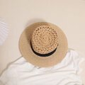 ラフィアハット、麦わら帽子 切り抜き織り 夏帽子 大人 ストローハット、ミディアムブリム 日よけ・UV対策 サイズ調節