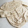 丸ヨーク部分は手編みで、それ以外は家庭用編み機を使っています。