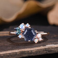 ブルーサンドストーンリングブルームーンストーンアレキサンドライトオパールクラスター結婚指輪ヒーリングジュエリー