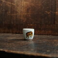 静止する茶色い牛(丑)◆九谷焼 色絵金彩猪口 昭和レトロ 干支 酒器 コレクション 古民家 古道具 i4