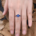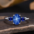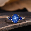 宝石: 6x8mm オーバルカット ラボ ブルー スター サファイアと 3x4mm ペアカット ラボ ブルー サファイア(ブルー スター サファイアがさまざまな角度で回転すると、それに応じて 3 つのスター ラインも動きます)