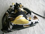 シェニール織りで黒地に映える 花々の色合いが 美しい! 手触りが 優しく 持っている 同じ素材で黒地の花柄の エプロン との コラボも 素敵です。 プチプレゼント 可愛い。