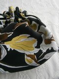 *色 黒地にイエロー・ブラウン・グリーン等の草花